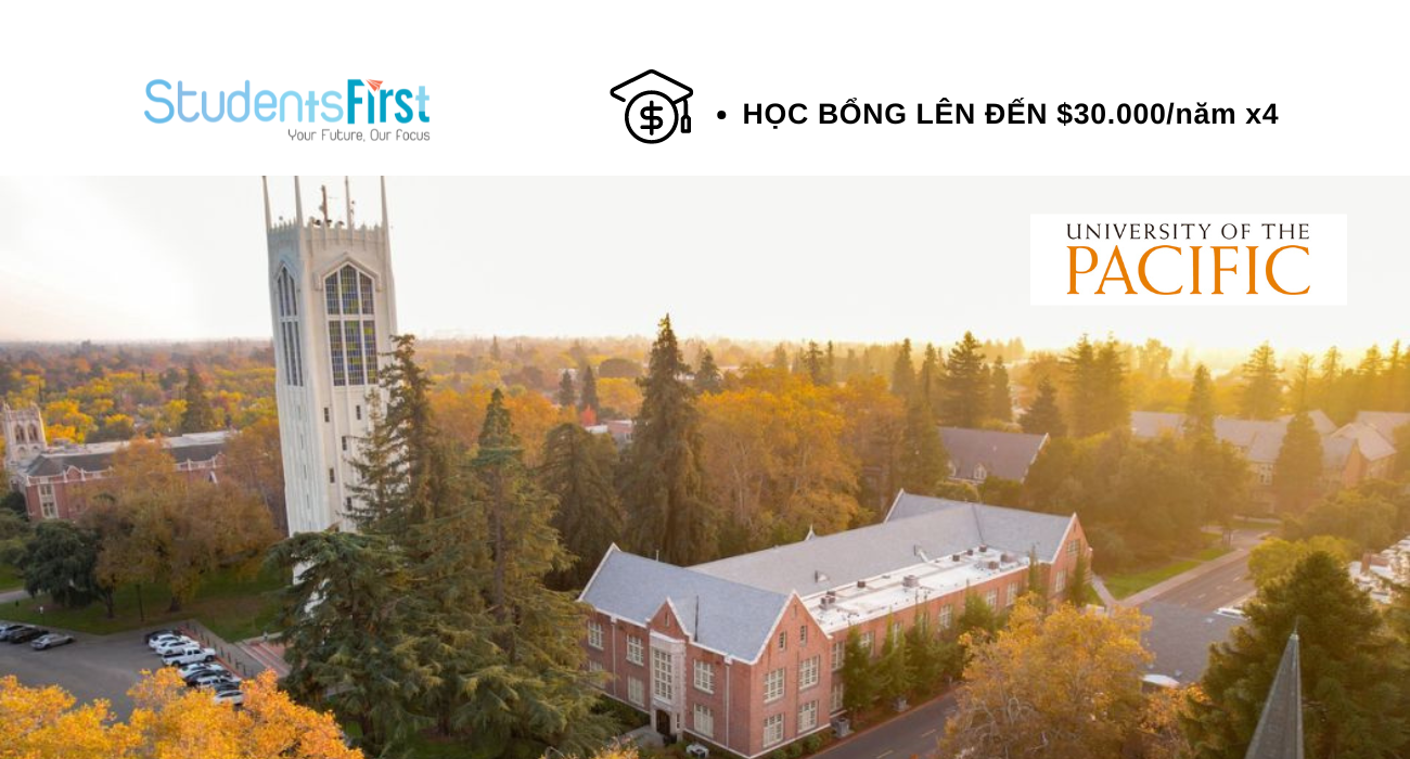Nằm tại thành phố Stockton, bang California- ngay sát thung lũng công nghệ nổi tiếng Silicon Valley, Đại học Pacific (hay còn được gọi là University of Pacific) UOP là trường đại học tư thục nổi tiếng với khuôn viên đại học xinh đẹp nhất nhì tại Mỹ. UoP nằm trong TOP những trường đại học có chất lượng đào tạo xuất sắc nhắc Hoa Kỳ dựa trên mức lương của sinh viên sau 10 năm ra trường ($69,600, ngang với Yale University) đồng thời là trường đại học có tỷ lệ sinh viên kiếm được việc làm cao nhất tại bang California (theo Zippia 2018).